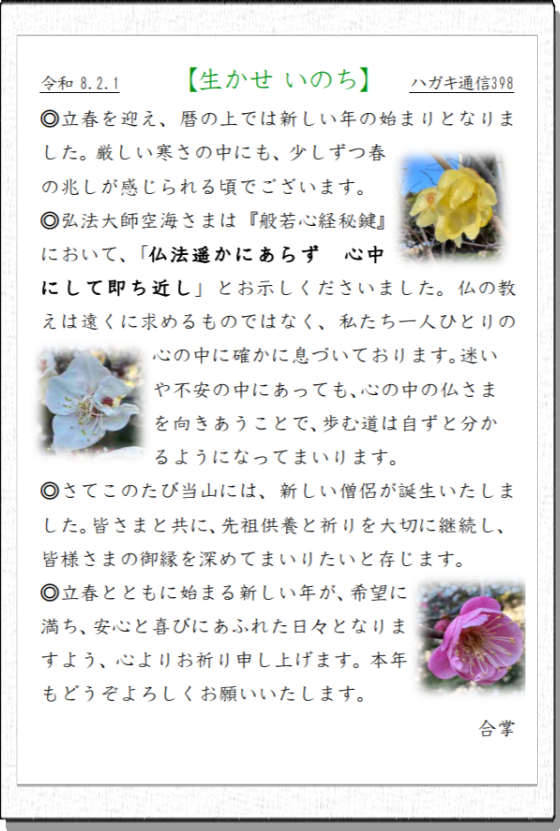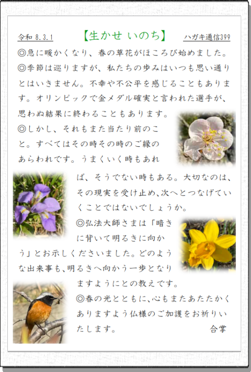 (過去のハガキ通信はこちらから 令和元年 令和2年 令和3年 令和4年 令和5年 令和6年